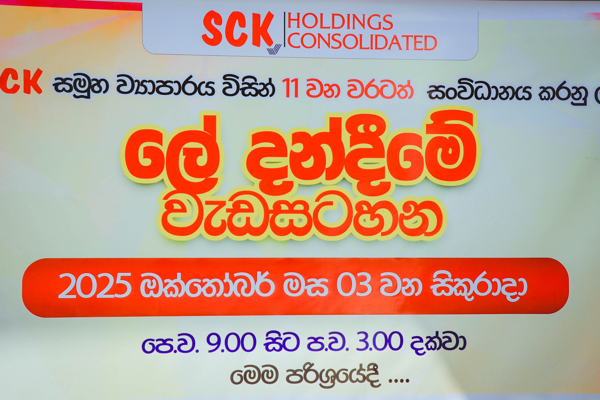 The event was held on Friday, October 3rd, from 9:00 a.m. to 3:00 p.m., at the SCK Head Office, located at St. Joseph Vaz Centre, 08 Maradana Road, Borella, Colombo.